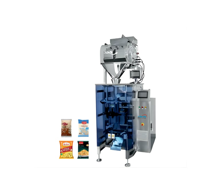 The Automatic Blender and Filling Machine integrates a high-capacity blender with a precision filling system to consistently mix and accurately dispense powders into containers or pouches. It ensures uniform blending of ingredients and reliable filling performance, making it ideal for foods, spices, dairy powders, and industrial powders.