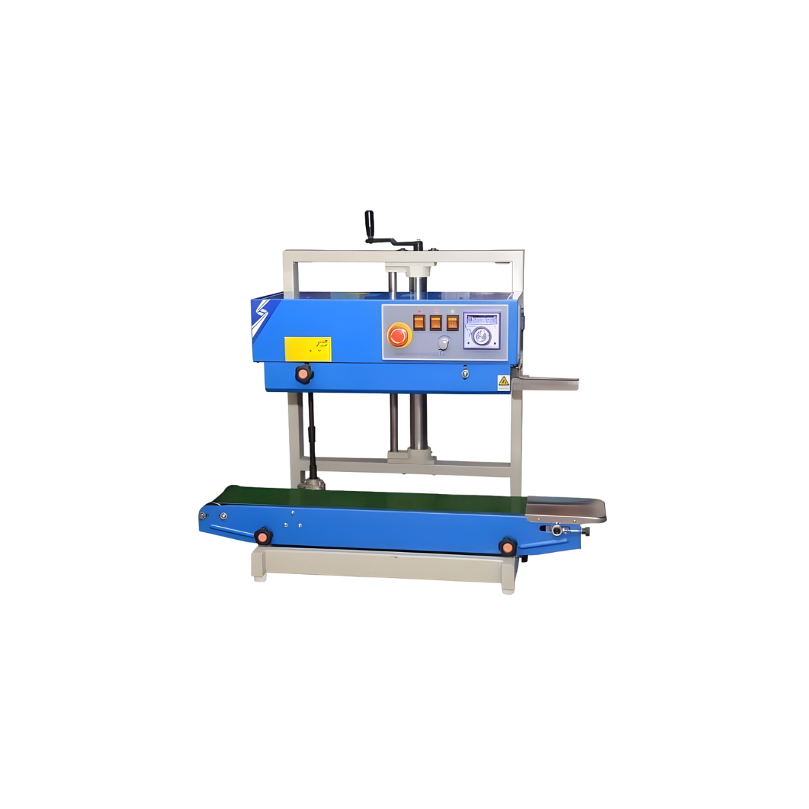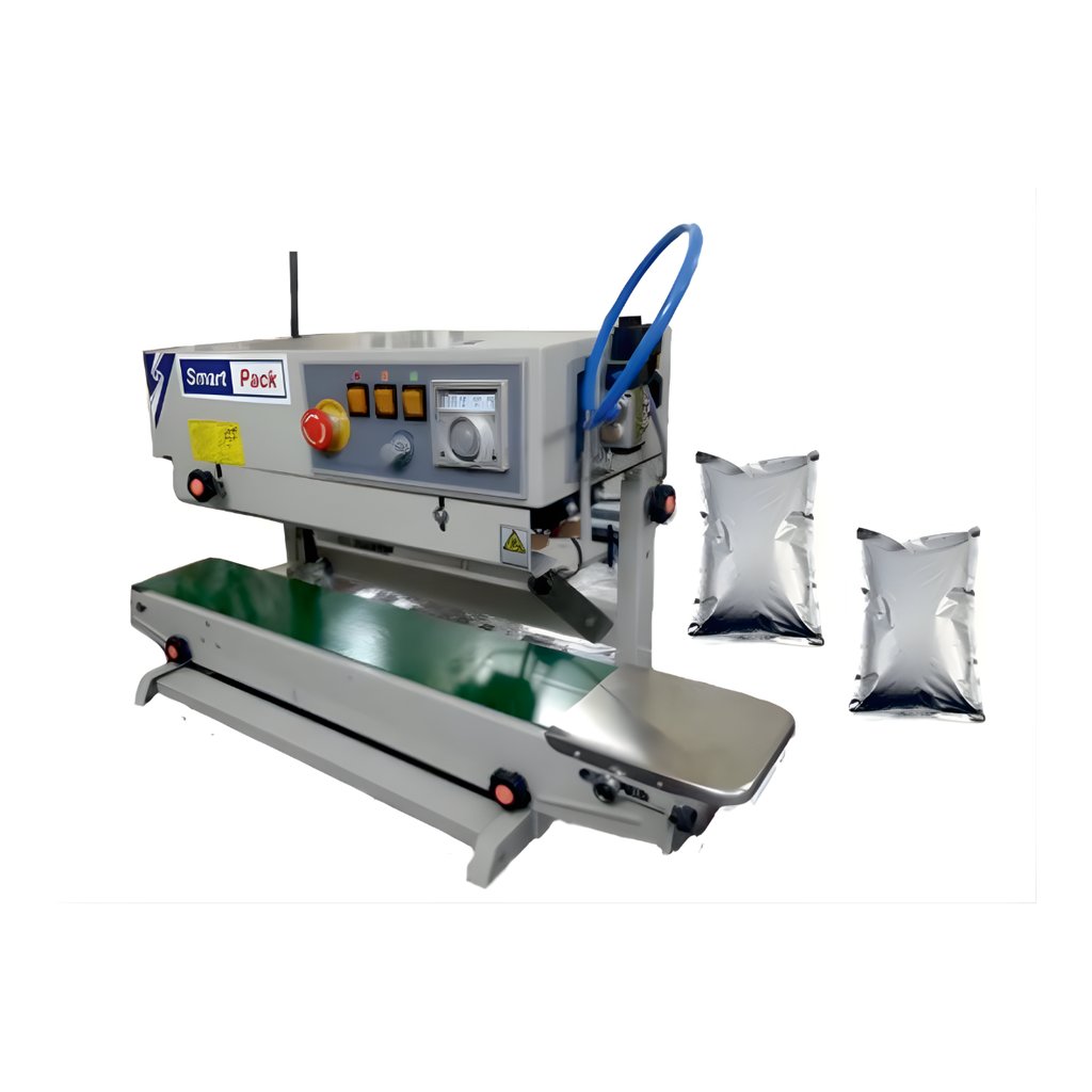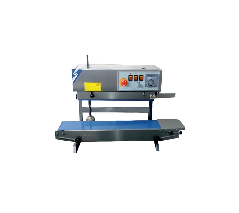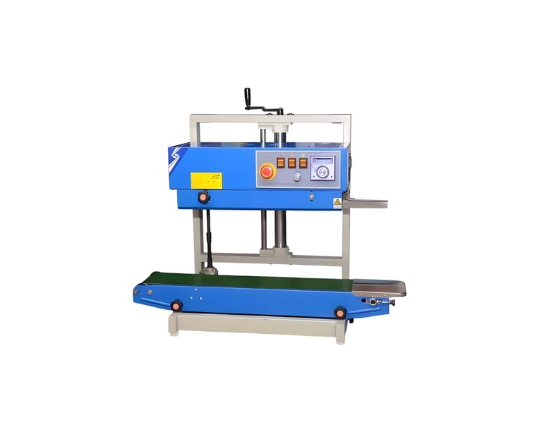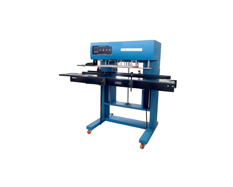 Our Vertical Continuous Band Sealer Machine to provide a high-speed, reliable sealing solution for bags containing liquids, powders, or heavy granules that must remain upright. By utilizing a continuous heating and cooling system, we help you achieve a perfectly airtight and leak-proof seal, ensuring your product's integrity and shelf-life are maintained at industrial speeds.